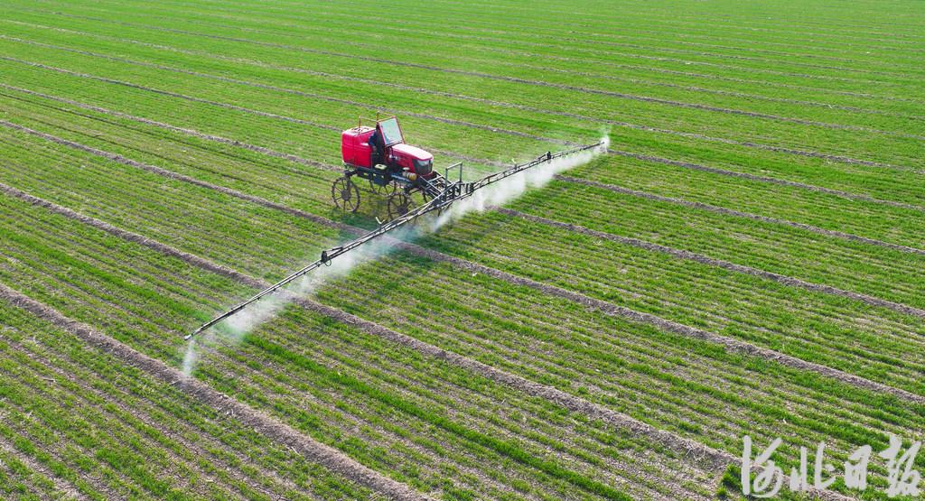 3月9日,邢台市南和区绿苗粮食种植专业合作社农民驾驶自走式喷雾机在麦田作业。河北日报记者 赵永辉 摄