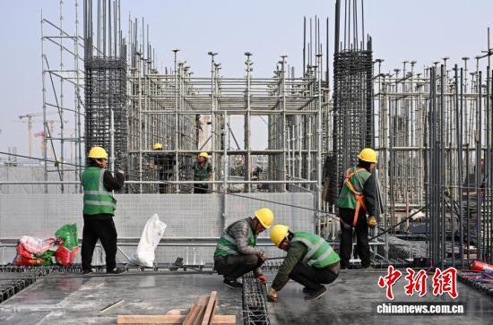 3月21日,北京科技大学雄安校区内,建设者正在进行施工作业。