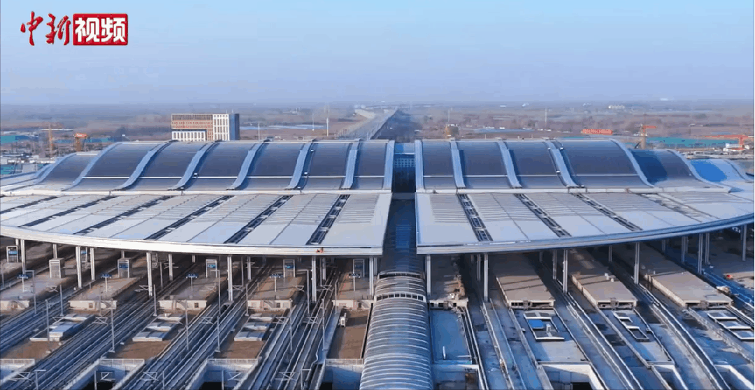 高空俯瞰雄安站。来源中新视频