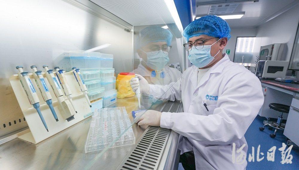 3月25日,在位于雄安新区中关村科技园的雄安妙心生物科技有限公司,科研人员正在基因检测实验室内进行基因测序前处理工作。河北日报记者 李畅 摄