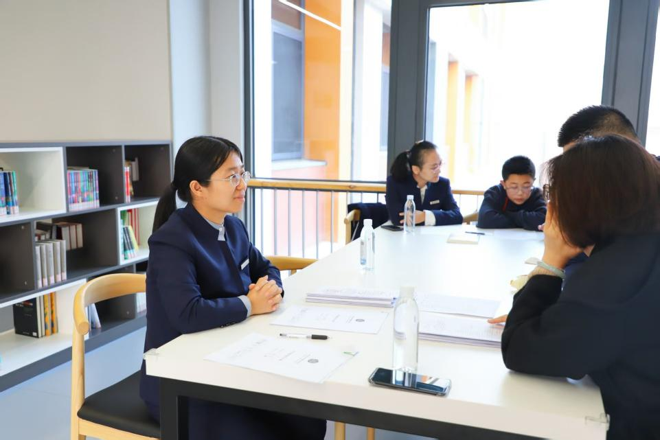 图为左小霞(左一)在与学生和家长面对面沟通。新华社发