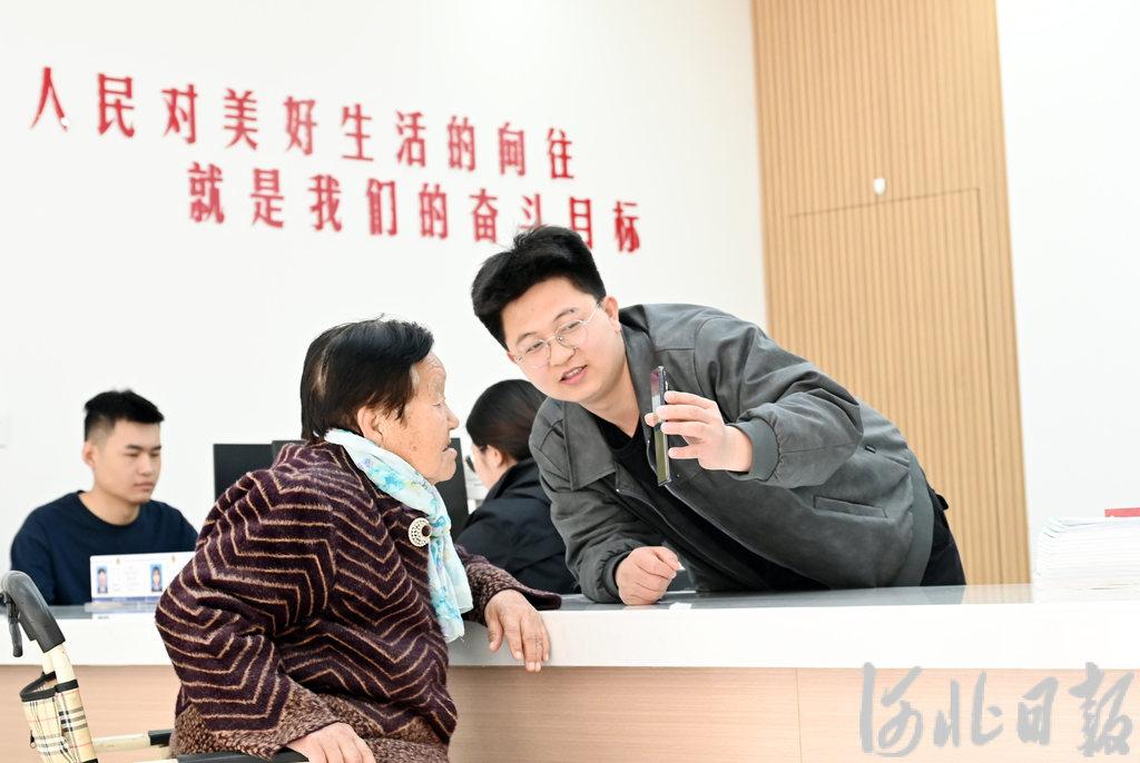 3月26日,雄安新区容东片区南文营社区,工作人员为居民进行认证服务。河北日报记者 刘光昱 摄