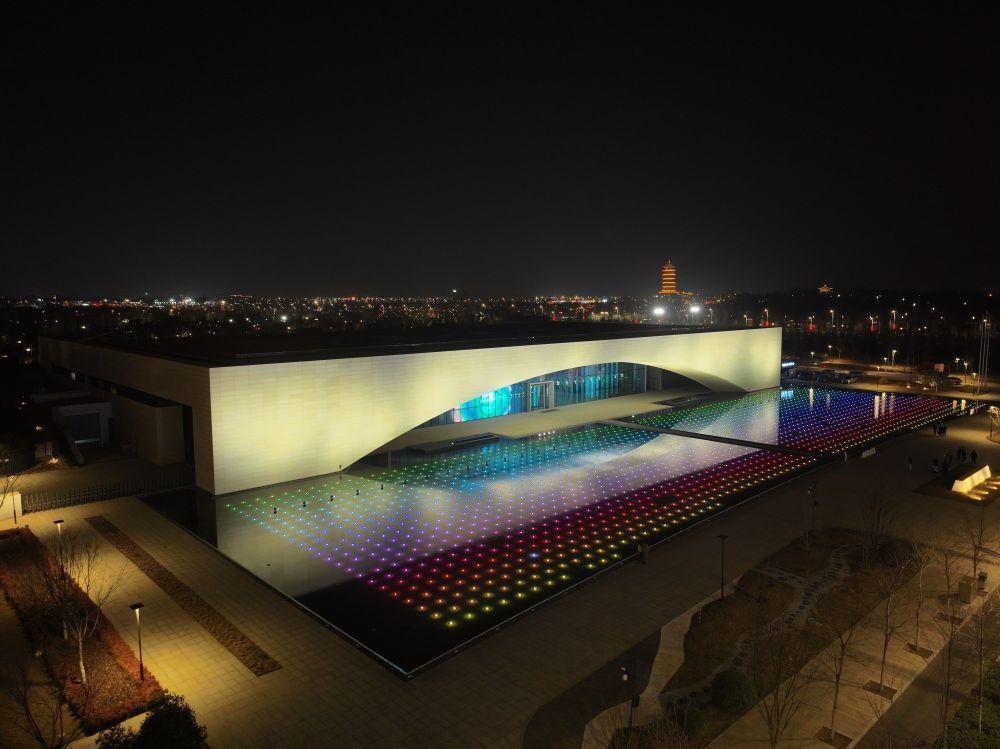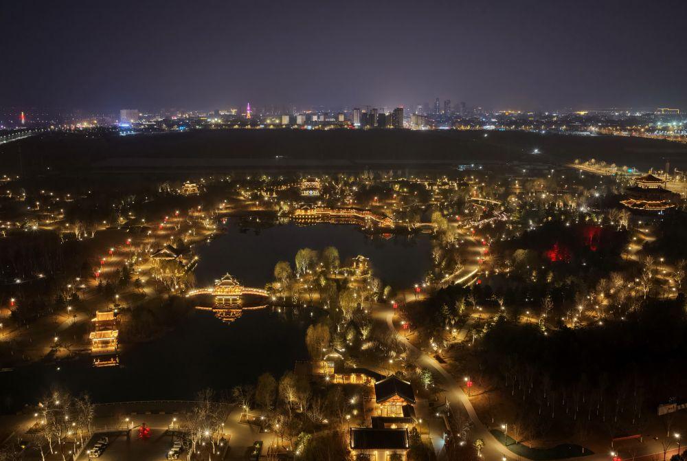 ↑ 雄安新区悦容公园夜景(3月16日摄,无人机照片)。新华社记者 杨世尧 摄