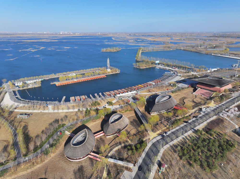 ↑ 雄安新区南河枢纽景色(3月18日摄,无人机照片)。新华社记者 杨世尧 摄