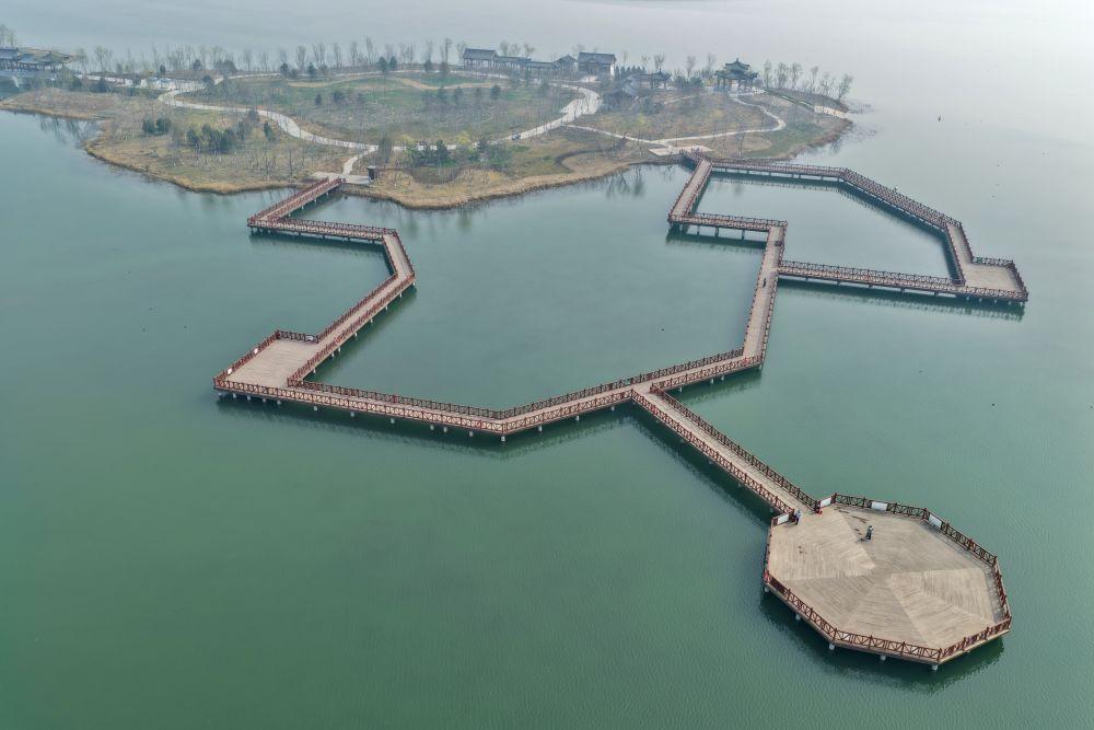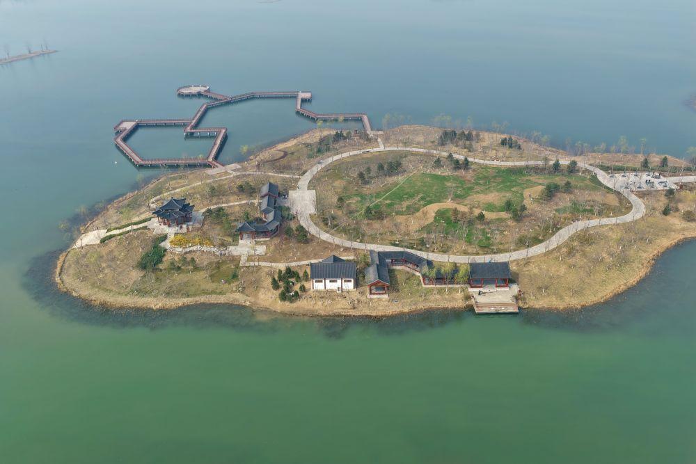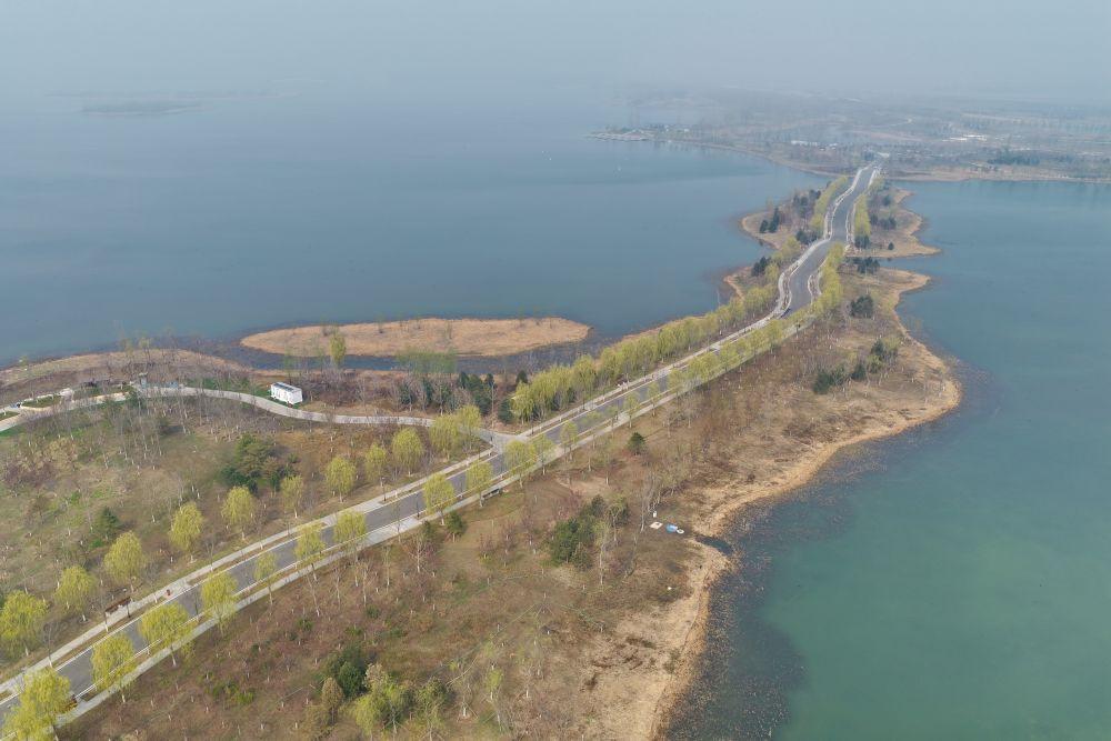 ↑ 这是雄安新区白洋淀燕南堤(3月26日摄,无人机照片)。新华社记者 牟宇 摄