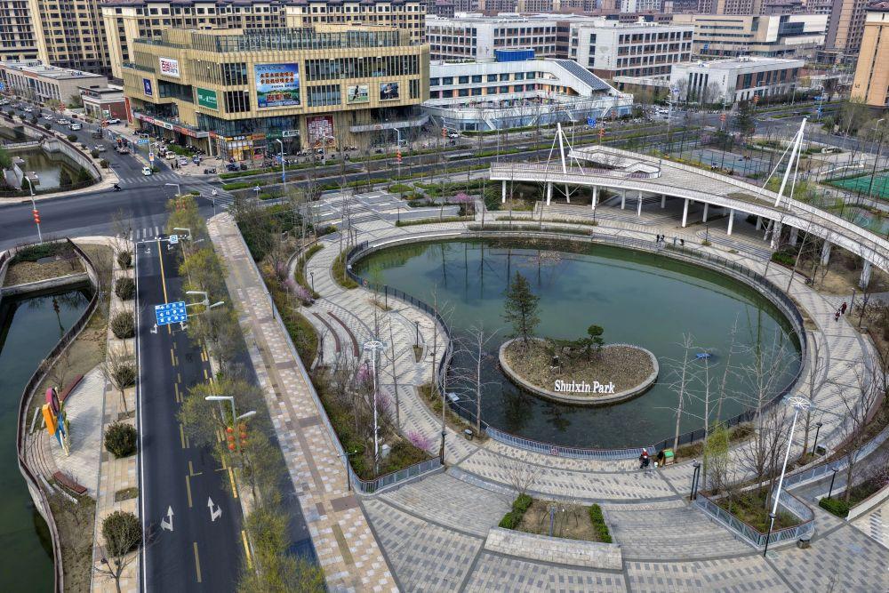 ↑ 这是雄安新区容东片区金湖公园(3月26日摄,无人机照片)。新华社记者 牟宇 摄