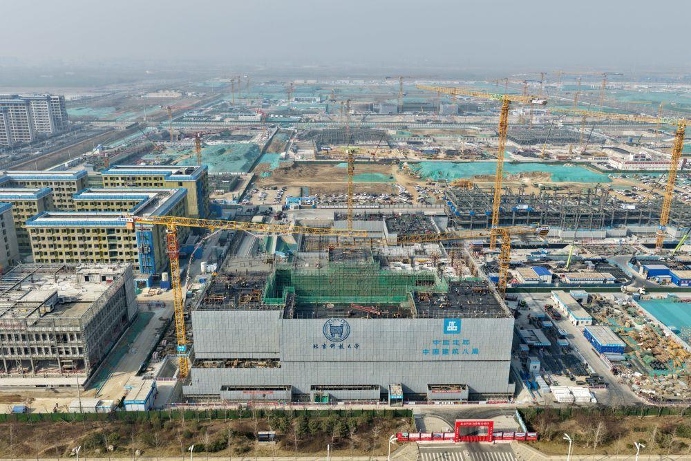 ↑ 北京科技大学雄安校区建设现场(3月25日摄,无人机照片)。新华社记者 牟宇 摄