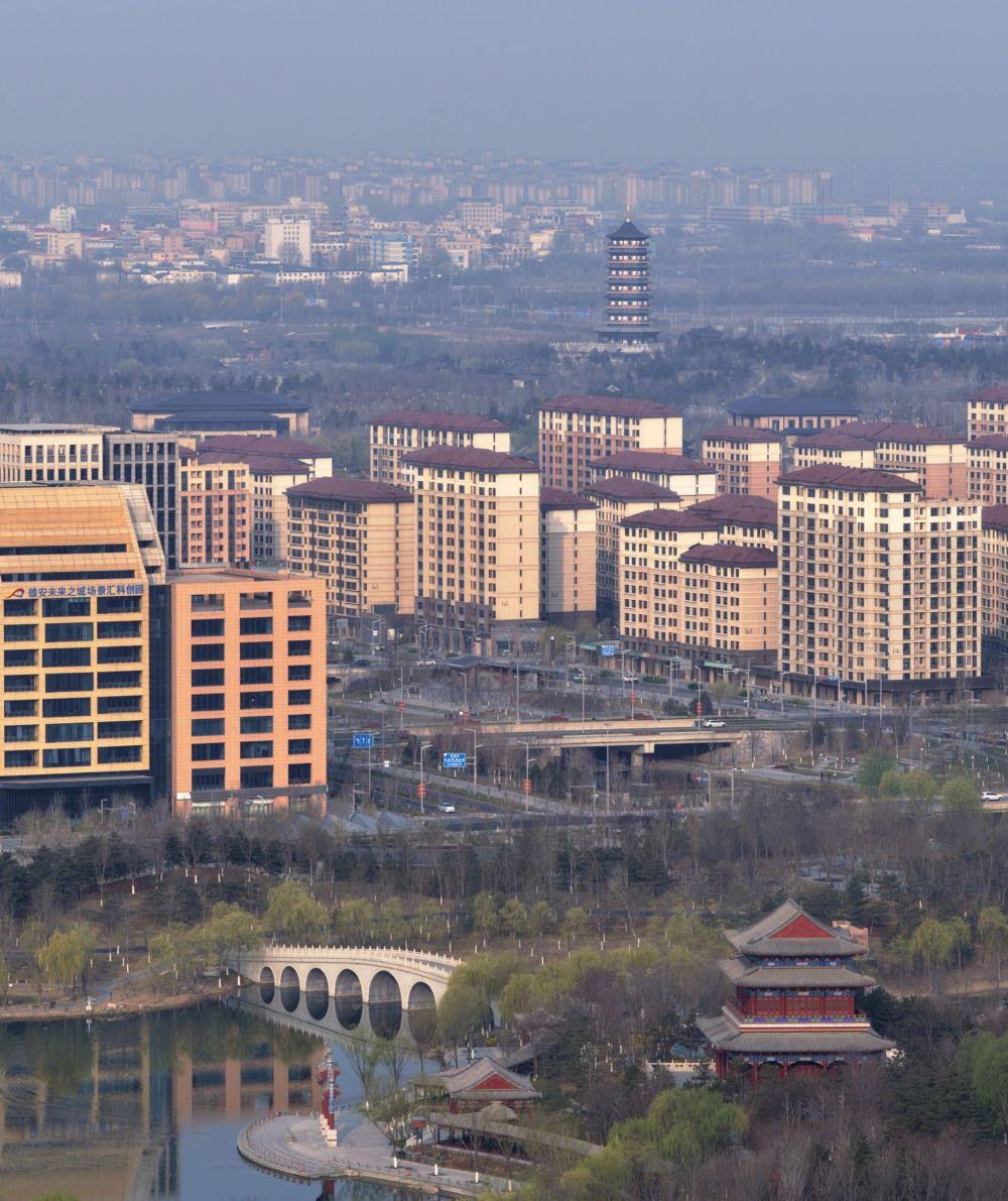 ↑ 雄安新区启动区景色(3月15日摄,无人机照片)。新华社记者 杨世尧 摄