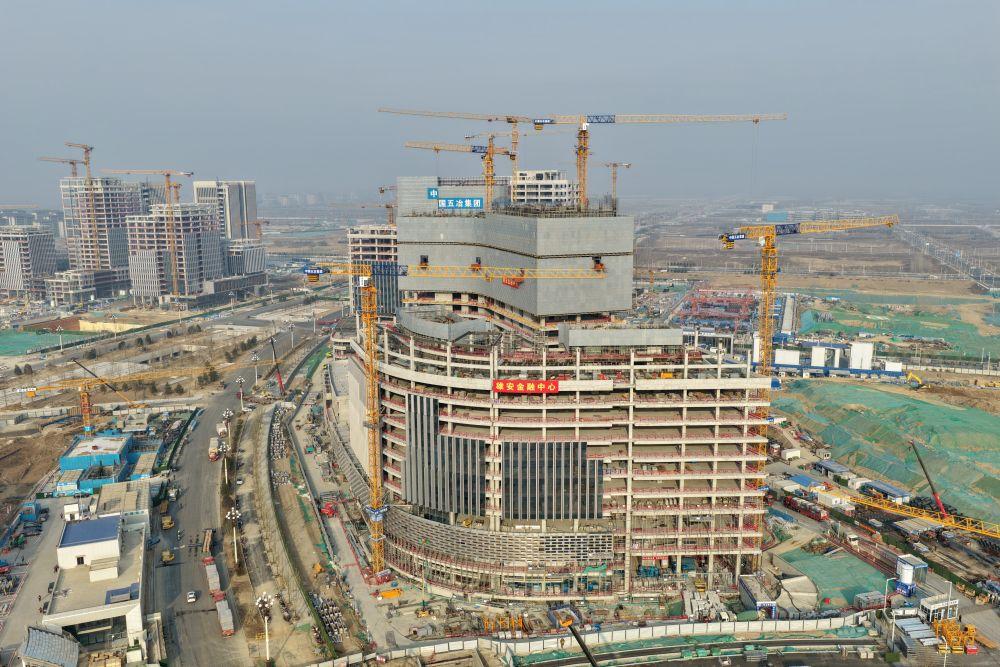 ↑ 位于雄安新区启动区的雄安金融中心建设现场(3月25日摄,无人机照片)。新华社记者 牟宇 摄