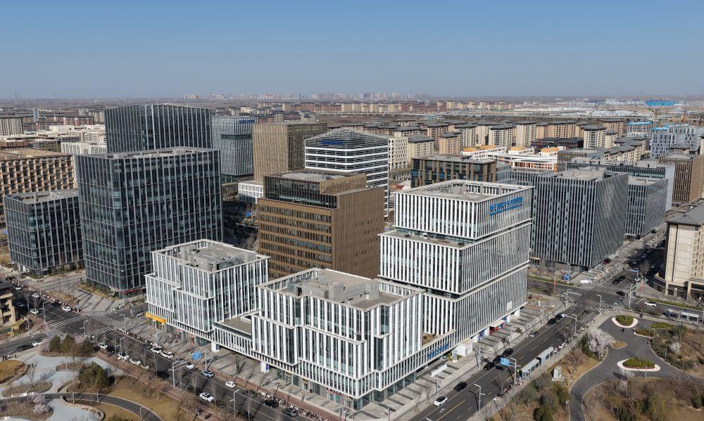 ↑ 雄安新区启动区中化大厦俯视图(3月17日摄,无人机照片)。新华社记者 朱旭东 摄