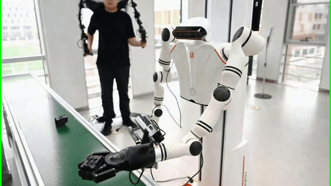 2026年3月17日,在中国雄安集团数字城市科技有限公司具身智能训练场,工作人员对机器人进行具身智能训练。新华社记者 朱旭东 摄