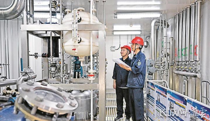 京津冀·沧州生物医药产业园,华润双鹤药业股份有限公司沧州分公司员工记录生产数据。张昊 摄