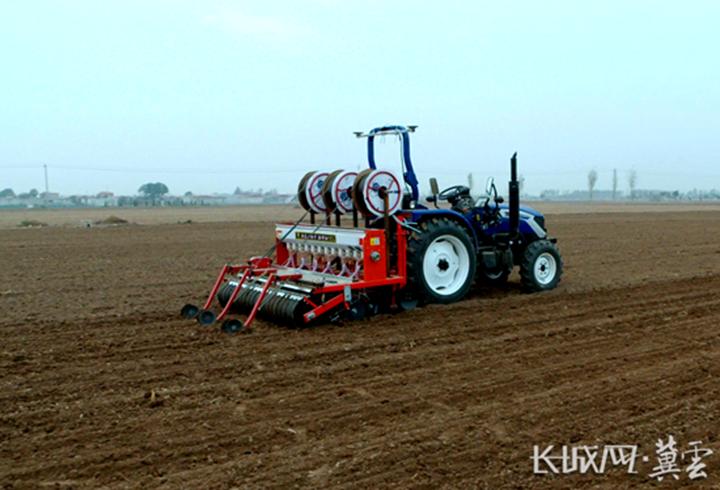 采用北斗导航系统的小麦播种铺带机正在播种。河北省农林科学院 供图