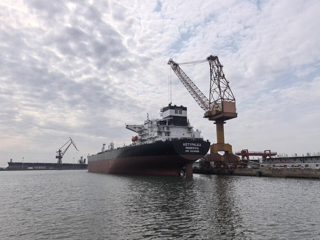 3月31日上午,在位于秦皇岛经济技术开发区东区的山海关船舶码头,由中国船舶集团所属大连造船山海关船舶重工有限责任公司(以下简称“山船重工”)建造的11.5万载重吨“阿斯提帕雷亚”号原油轮交付。这艘总长约249.8米、型宽44米、型深21.2米的巨轮,线条刚毅流畅,尽显力量之美。