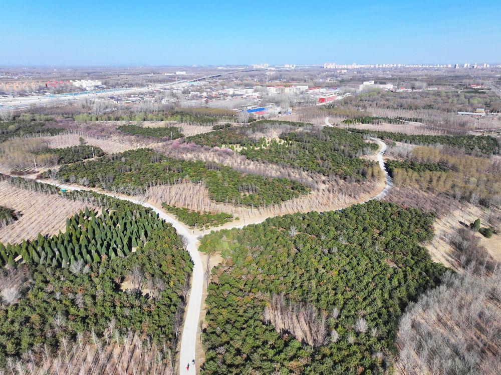 3月18日拍摄的雄安新区“千年秀林”(无人机照片)。新华社记者 朱旭东 摄
