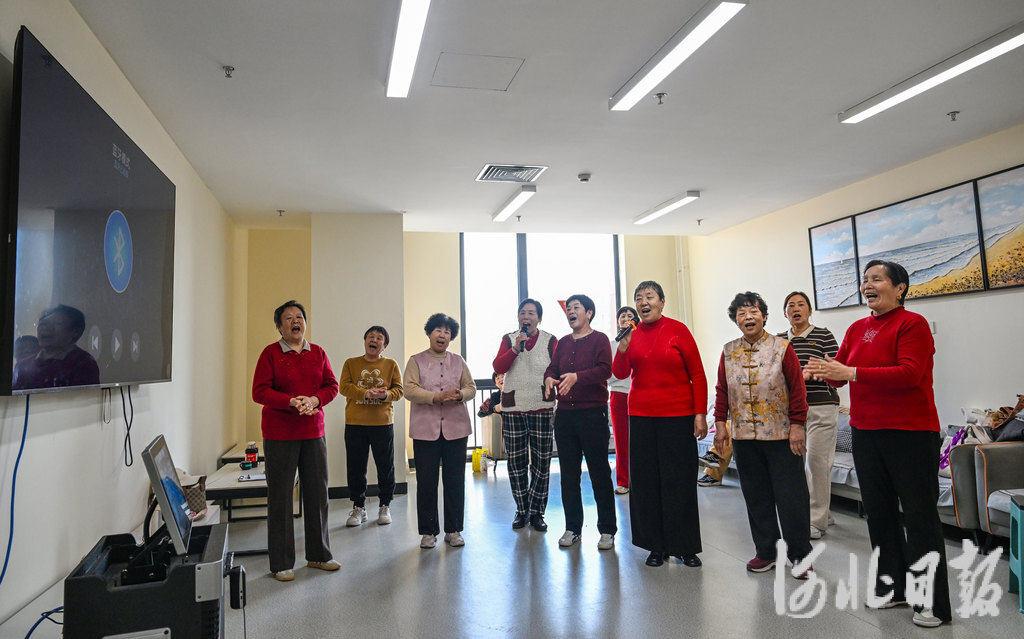 3月19日,雄安新区容西第一养老驿站,贤溪社区老人在练习合唱。河北日报记者 李东宇 摄
