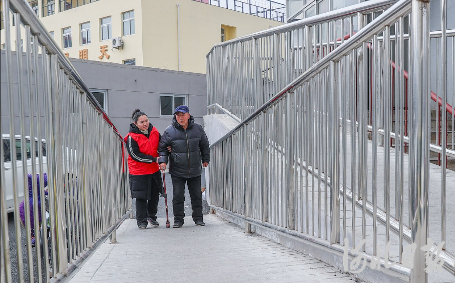 3月4日,秦皇岛市海港区吉星里社区,居民在改造后的单元门坡道上行走。河北日报记者 赵杰 摄