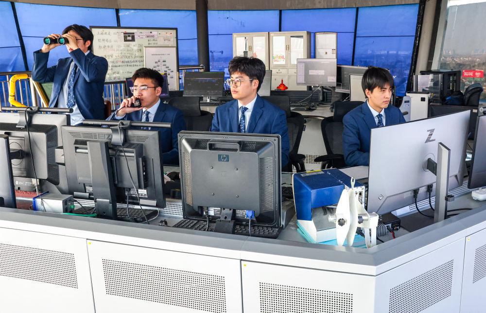 1月28日,管制员在扬州泰州国际机场塔台指挥飞机起降。新华社发(任飞 摄)