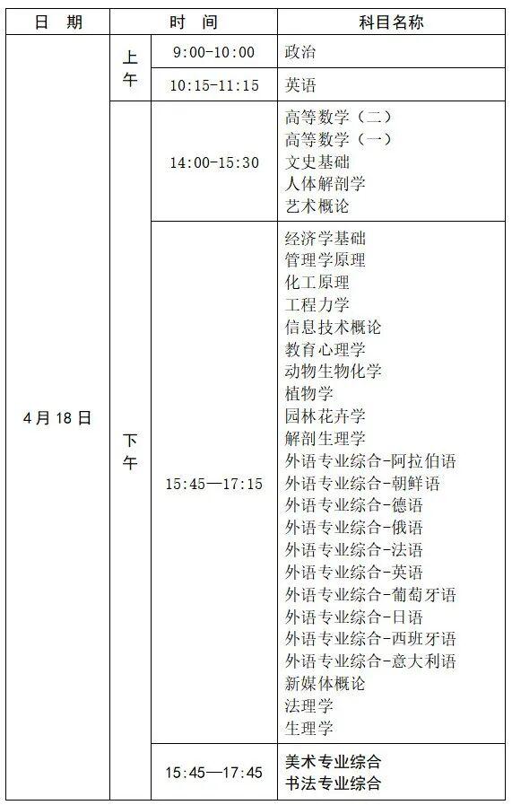注:考试时间以北京时间为准。开考15分钟后,迟到考生不得进入考点参加当场科目考试,考试结束前考生不得提前交卷离场。上午及下午两科考试间隔的15分钟用于收、发试卷,期间不允许考生离开座位。