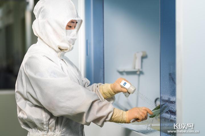 河北圣昊光电的技术人员在调试设备。长城网·冀云客户端记者 袁立朋 摄