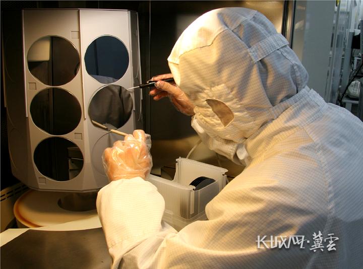同光半导体技术人员正在清洗加工晶片。
