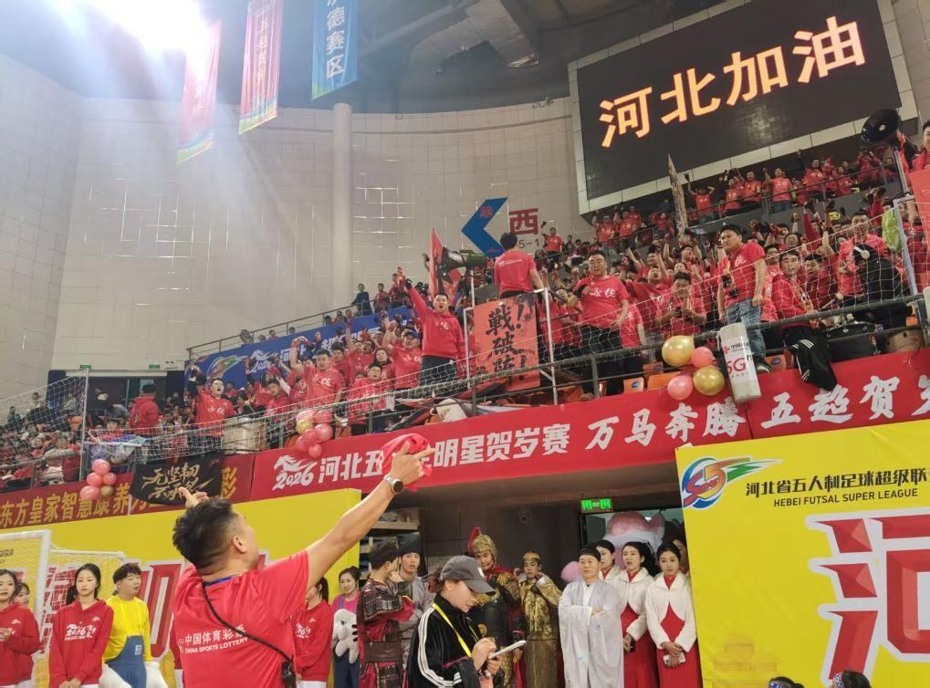 2月10日,“河北五超”贺岁杯上球迷们加油助威。(图片来源:新华社)