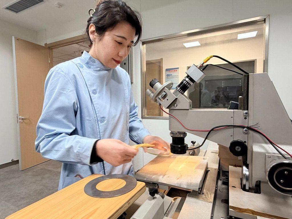 3月4日,网都河北科技服务有限公司下属的检测中心,工作人员正对一片铜丝网进行检测。河北日报记者 白云 摄