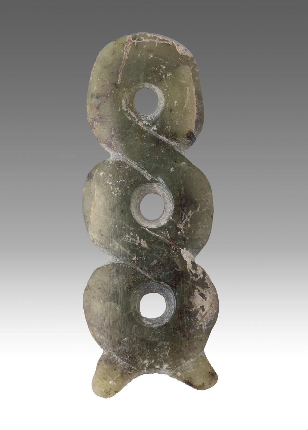 郑家沟遗址一号积石冢出土三联璧。 河北省文物考古研究院供图