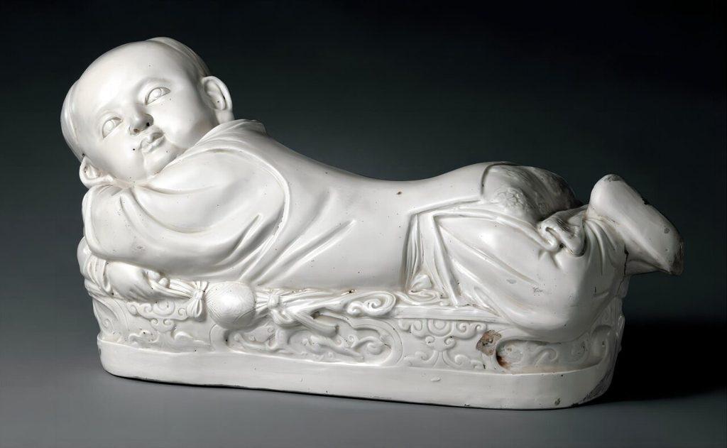 北宋定窑孩儿枕(北京故宫博物院藏)。河北日报资料片