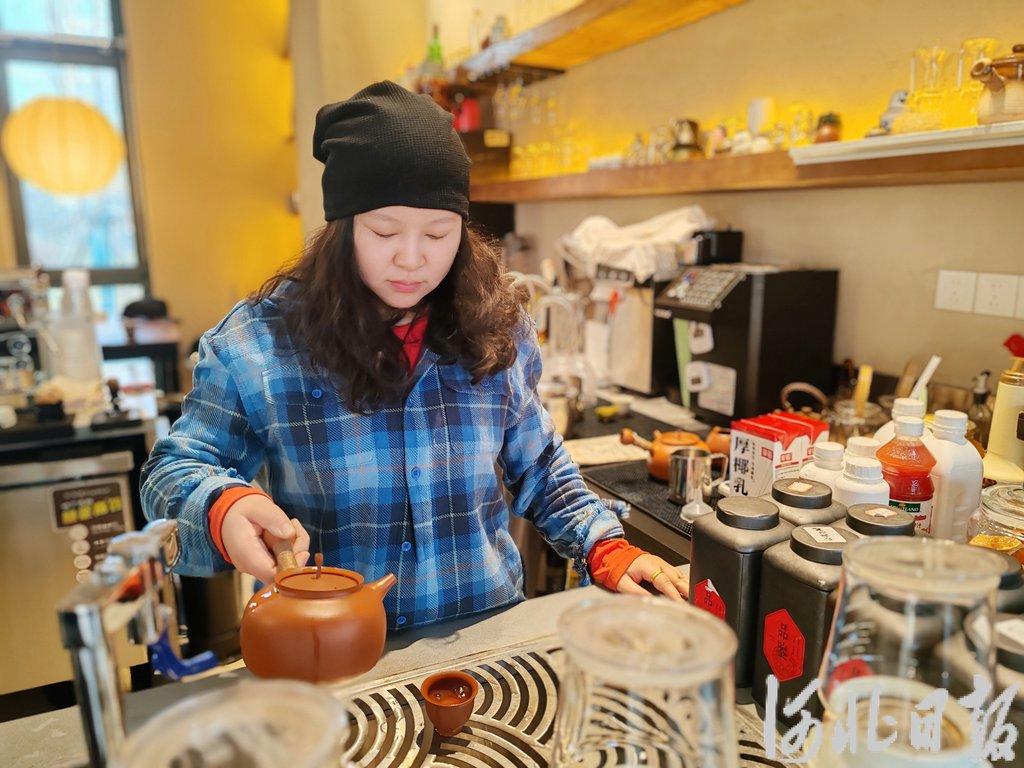 杨雷在自己创办的店铺十时安茶酒肆内忙碌。河北日报资料片