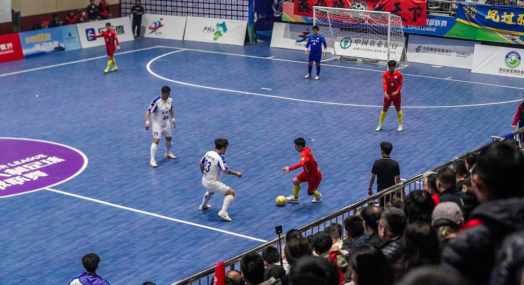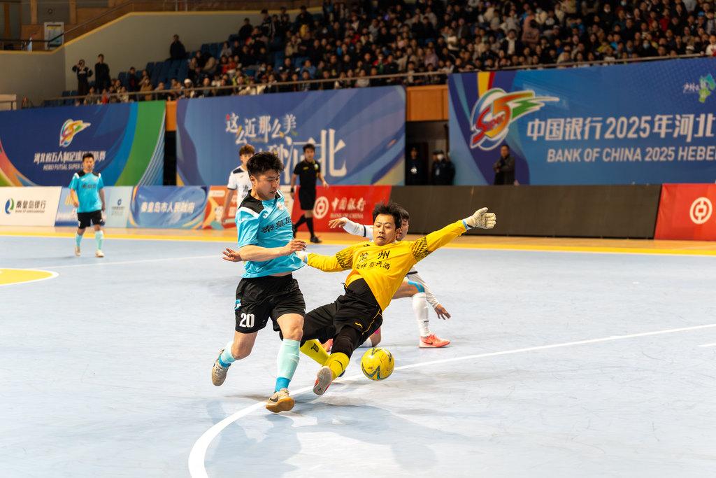 从观众视角看,观看五人制足球沉浸感十足。“河北五超”比赛都在室内体育馆举办,球场布局紧凑,最前排观众离球场不过几米。“能听到球员球鞋摩擦地板的声音,甚至能捕捉到球员急促的呼吸,观众的代入感很强。”一位球迷说。