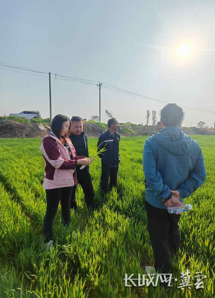 同一时间,这片田里还迎来了一支特殊的“医疗队”。邢台市农业农村局农业技术推广站站长李艳带领技术团队,踩着湿润的田埂,深入田间开展春季管理现场培训。他们拨开麦苗,仔细查看群体、测量株高,并扒开土壤观察墒情和根系发育。