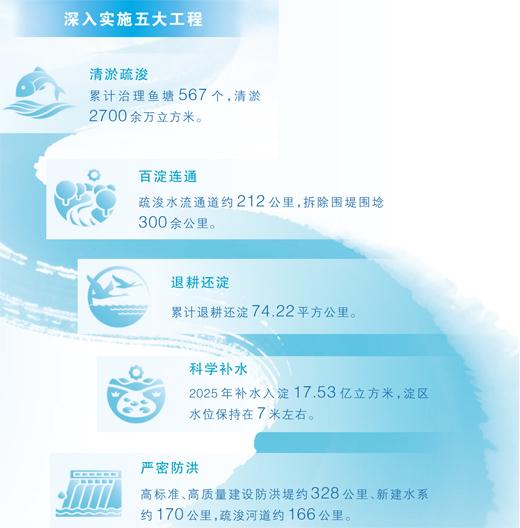 “建设府河、孝义河入淀口功能湿地,实施有水入淀河道综合治理;划定化肥、农药禁施区,沿河沿淀规模化畜禽养殖场全部退出;完成淀中淀边村生活污水治理和导排综合利用,防止污水直排入淀。”雄安新区生态环境局水生态环境与自然生态保护处负责人周立志介绍。