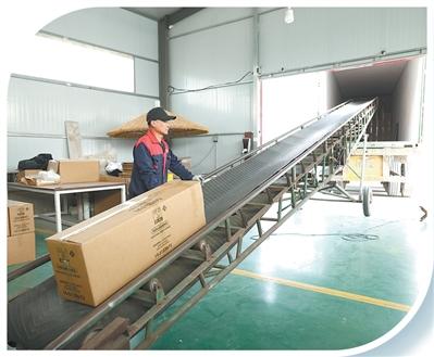 兆龙芦苇工艺专业合作社里,工人将准备出口的苇帘打包装车。李兆民 摄