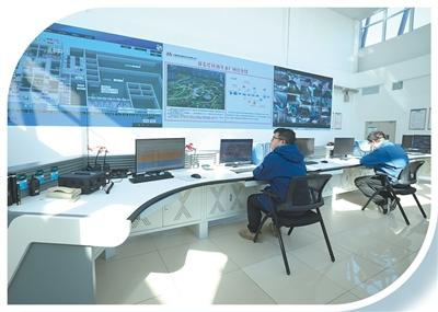雄安新区容东再生水厂智慧调度中心里,工人在监测水厂运转情况。李兆民 摄