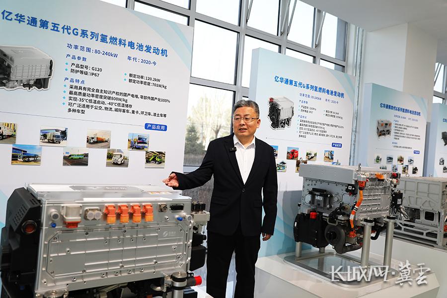 在亿华通展厅里陈列着第五代氢燃料电池发动机。长城网·冀云客户端记者 刘朋朋 摄