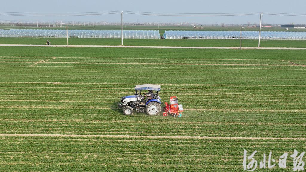3月9日,在邢台市南和区邵屯村农田,农民驾驶农机为小麦施肥。河北日报记者 赵永辉 摄