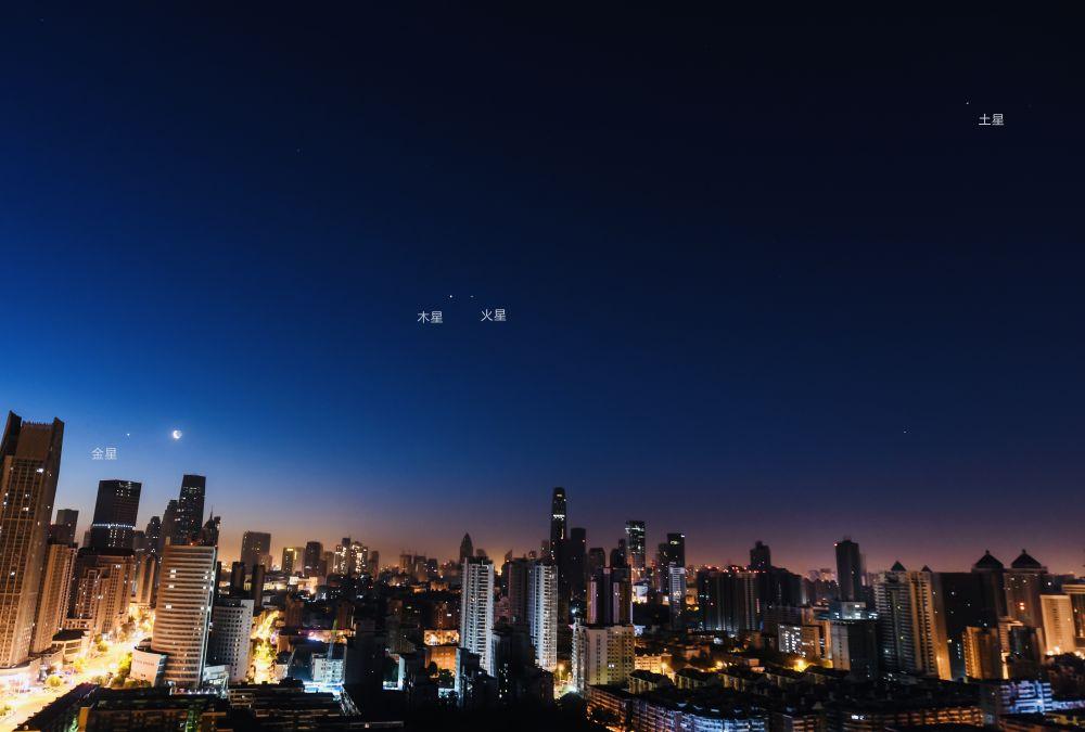 2022年3月28日,在天津市东丽区拍摄的行星相聚。(杨婧 摄)