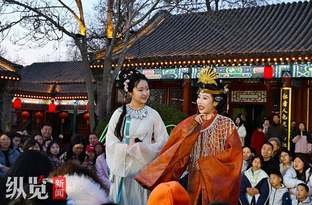 2月17日,游客在正定荣国府景区观看“一梦入红楼”夜游演出。(河北日报资料片)河北日报记者 史晟全 摄