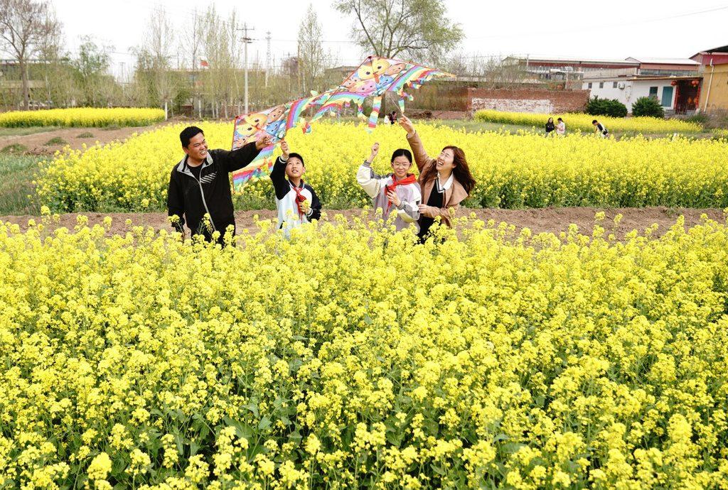 春和景明,邢台经济开发区北街村油菜花盛开。近日,邢台经济开发区北街小学开展了亲子踏青寻春活动,孩子和家长一起乐享美好春光。河北日报记者 赵永辉 摄