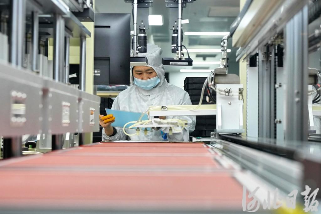4月15日,位于京津冀智能网联新能源汽车科技生态港廊坊园区的华田信科(廊坊)电子科技有限公司,员工在生产线上忙碌。河北日报记者 王伟 摄