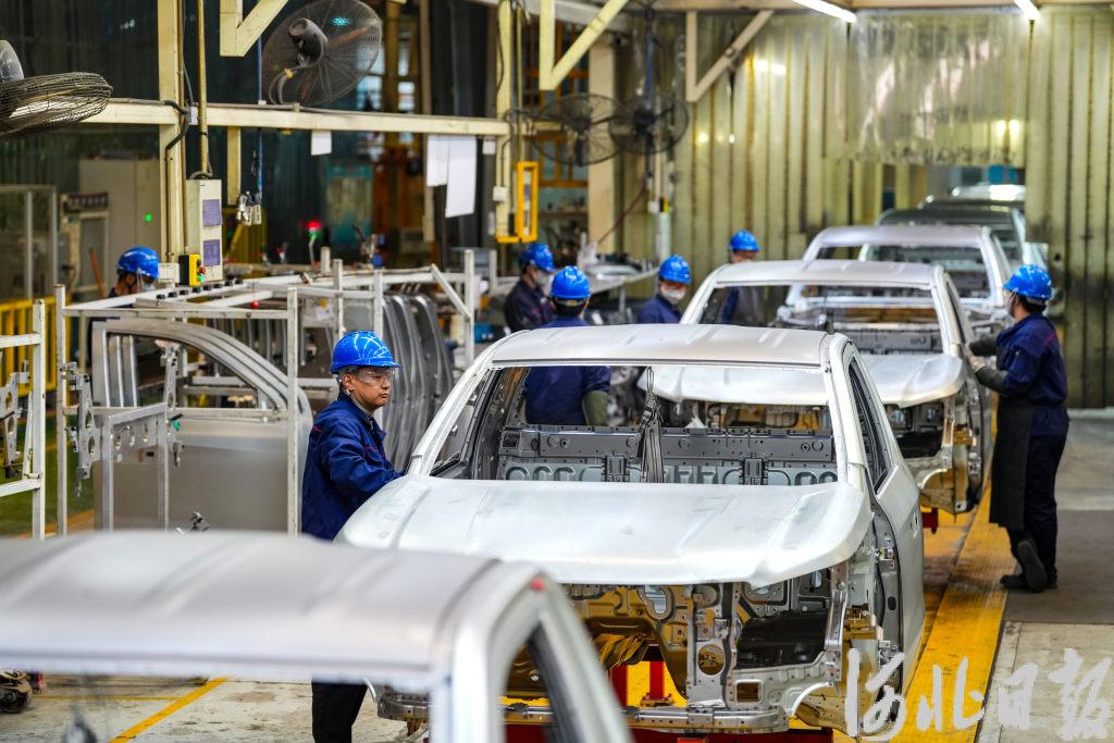 4月15日,河北长安汽车有限公司焊接车间,员工在生产线上作业。河北日报记者 许佳奇 摄