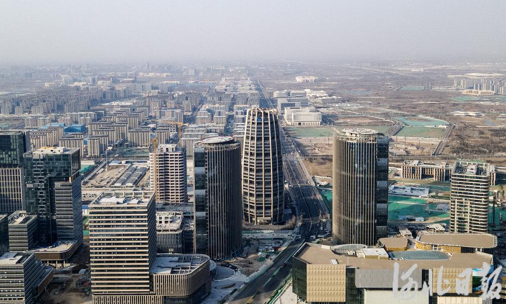 3月19日拍摄的雄安国贸中心及京雄快线等项目。河北日报记者 刘光昱 摄