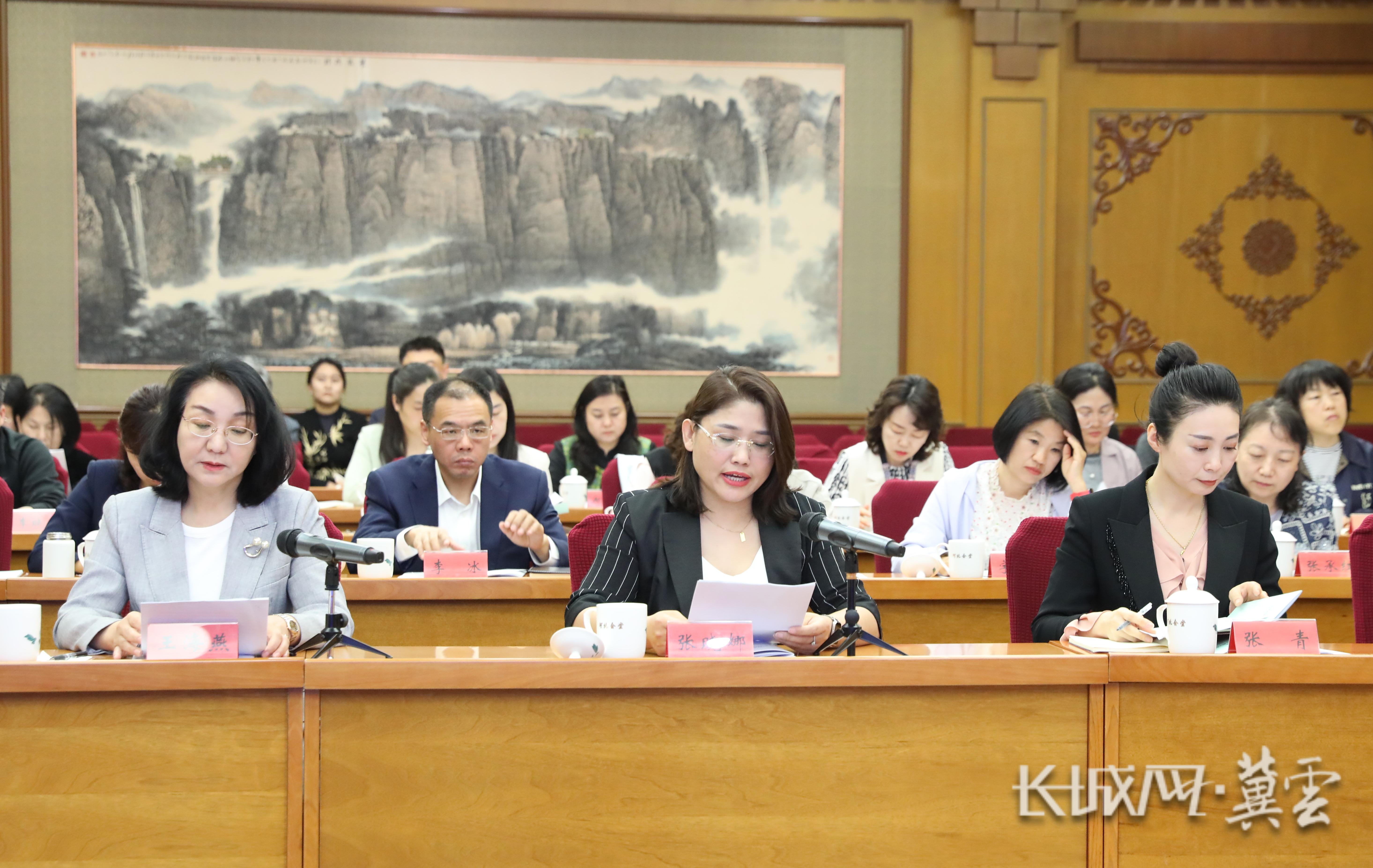 4月24日,巾帼家政企业代表在民生工程工作会上发言。长城网·冀云客户端实习生 商越 摄