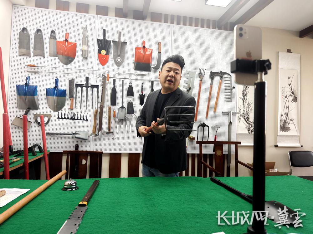在成安“一品一播”基地,直播员向网友介绍当地生产的金属产品。长城网·冀云客户端记者 袁立朋 摄