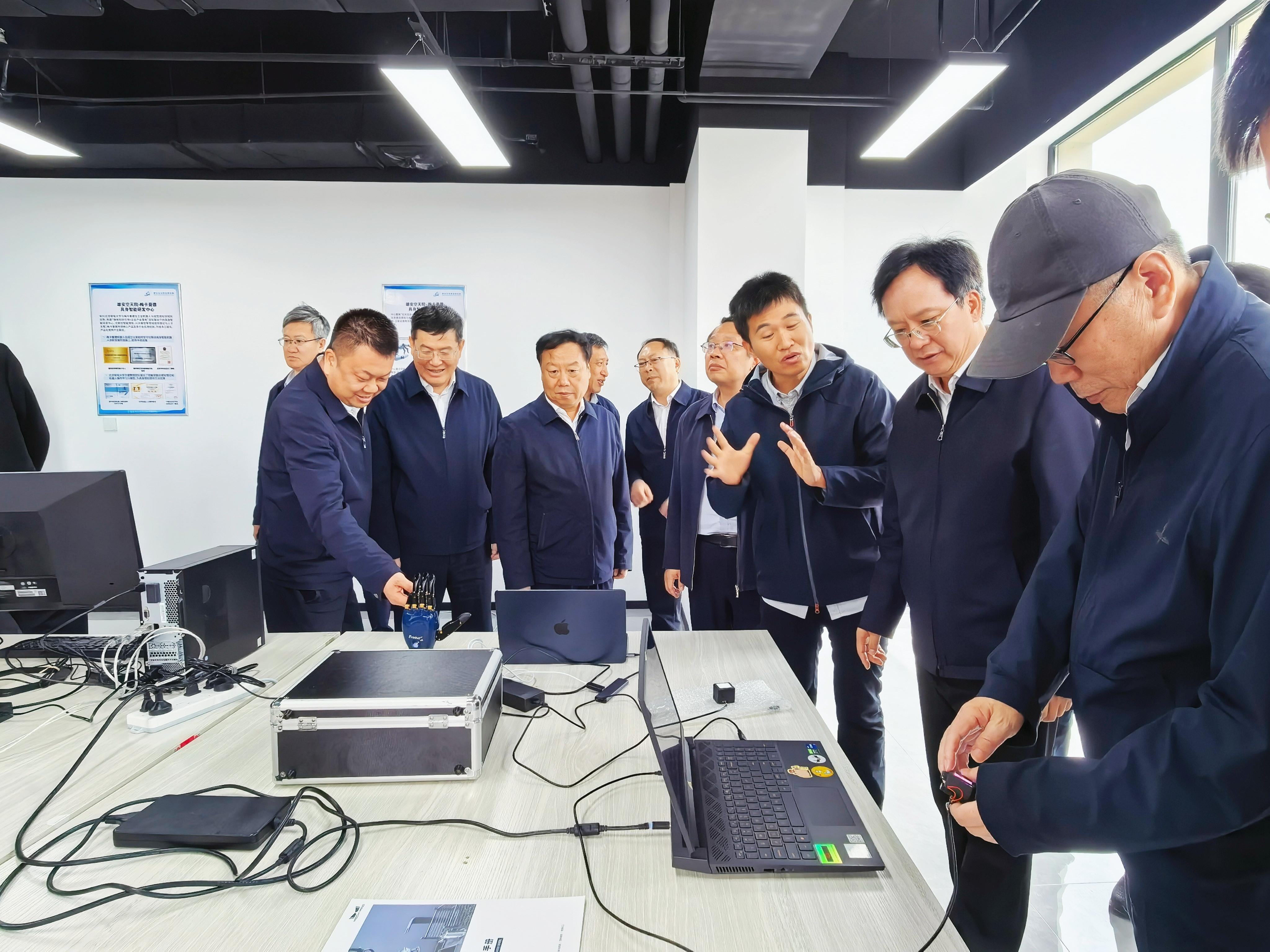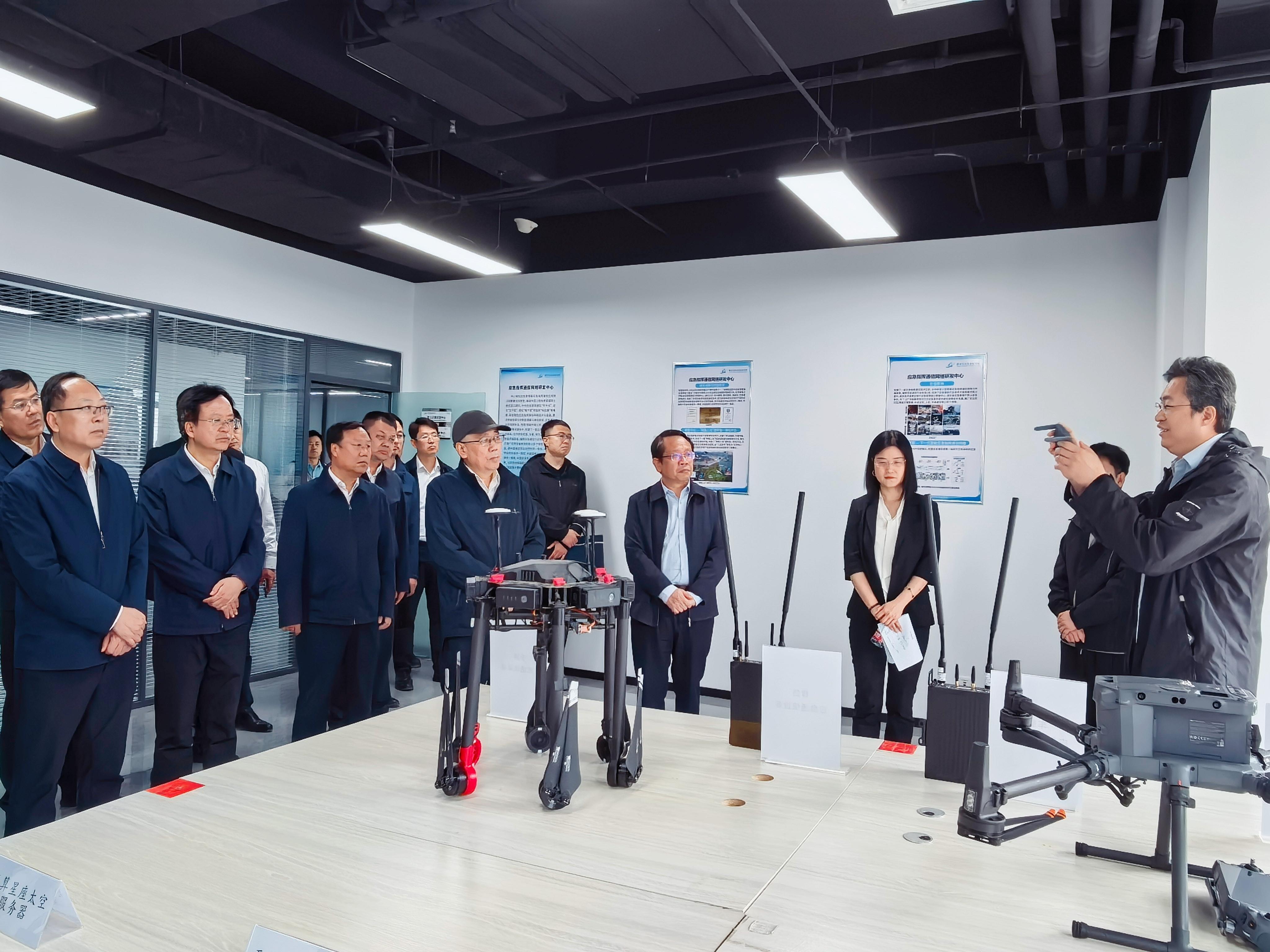 图为4月26日,与会嘉宾正在应急指挥通信网络研发中心观看“网随人动”通导指一体化平台。陈汝健摄