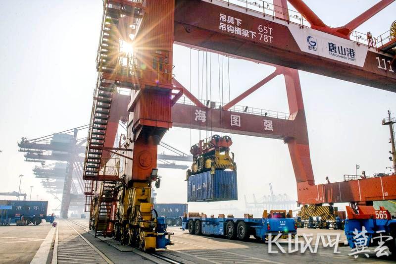 繁忙的唐山港京唐港区集装箱码头。新华社发
