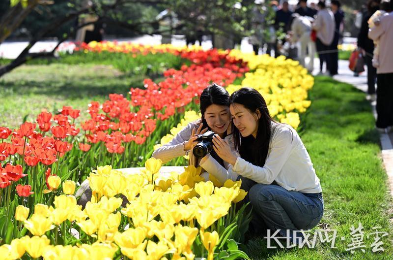 今年清明小长假期间,游客在石家庄植物园赏花游玩。新华社发