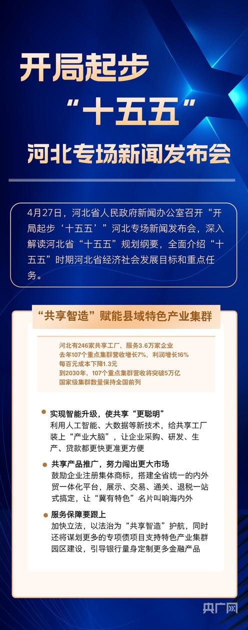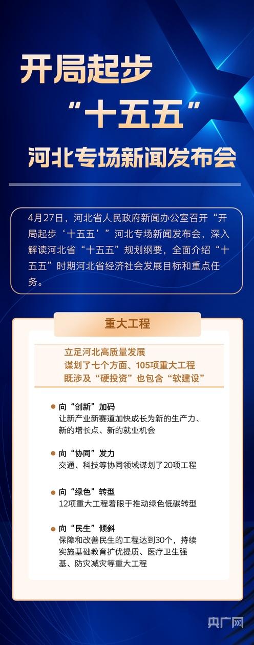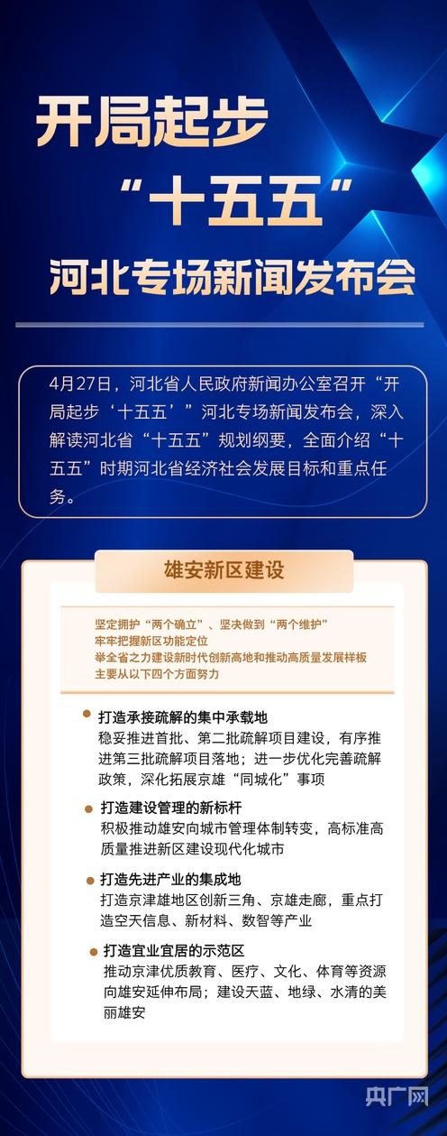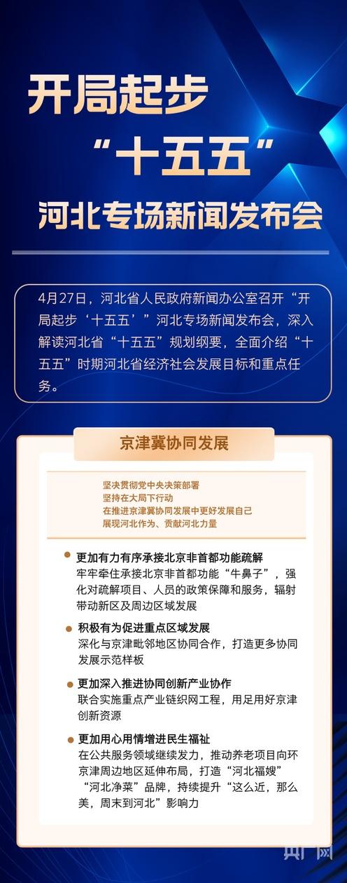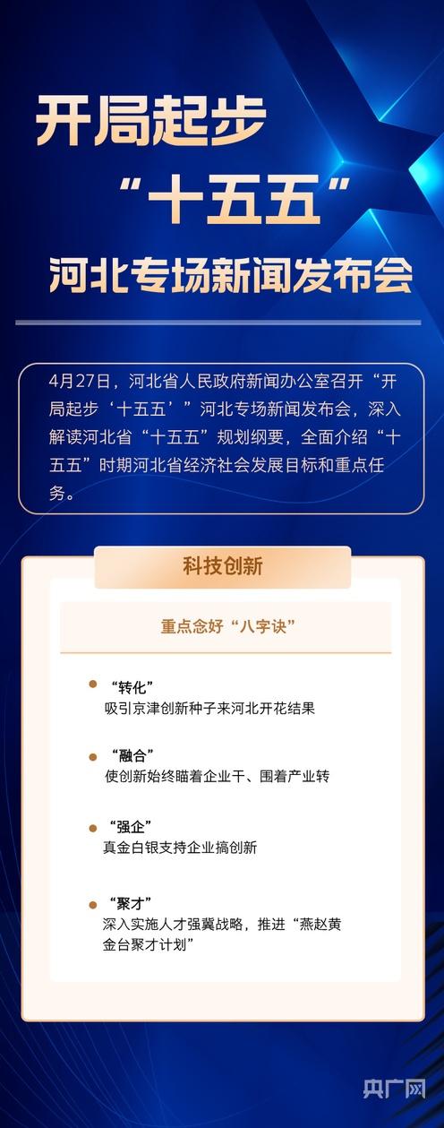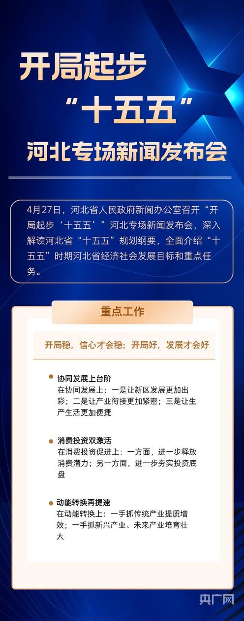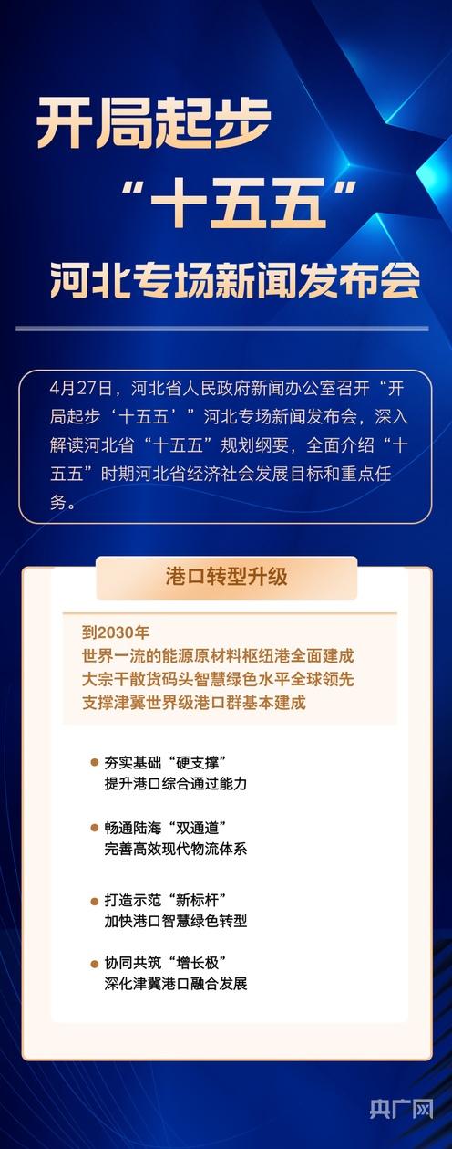 央广网石家庄4月27日消息(记者 李瑶)4月27日,河北省人民政府新闻办公室召开“开局起步‘十五五’”河北专场新闻发布会,深入解读河北省“十五五”规划纲要,全面介绍“十五五”时期河北省经济社会发展目标和重点任务。未来五年,河北怎么干?一组长图划重点。