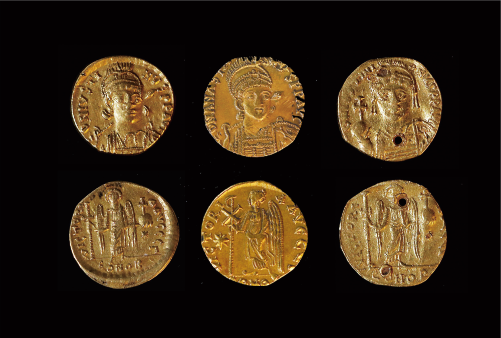 北朝考古博物馆展出的拜占庭金币。新华社记者 赵鸿宇 摄